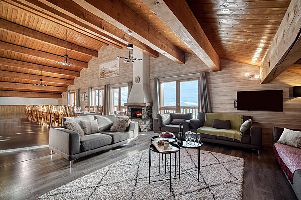 When we talk about luxury chalets in Val Thorens, we refer to chalets boasting five-star facilities: large ski rooms with boot warmers, cinema rooms, stunning central-piece fireplaces, playstations, large chef-style kitchens, spa rooms and, of course, floor to ceiling windows so that you can soak in the views from the warmth of your living room. Luxury chalets usually come with concierge services that'll take care of everything for you, from ski passes to lessons, equipment hire, airport transfers, shuttle service to the lifts, etc. A private chef or a 24hr chauffeur can usually also be added as options.